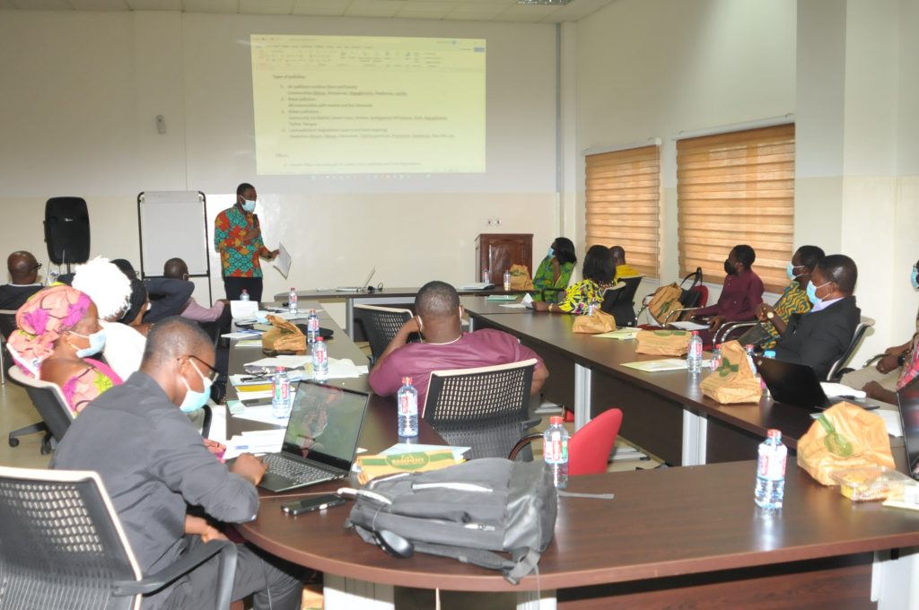 This workshop, held on March 25, 2022 at the Cedi Conference Centre, sought to explore the dynamics of environmental change and associated pollution in the Greater Accra Metropolitan Area (GAMA). The workshop’s overarching objective was to gather participants’ perspectives on the extent to which GAMA is creating resilience in the face of increasing land-use-induced environmental pollution. It was funded by UKRI and GCRF partnership funds through the ARUA COE, University of Lagos. Representatives from government institutions, academia, development practitioners, and opinion leaders from various communities attended the event. Prof. Dan Ofori, Provost of the College of Humanities in delivering his opening remarks emphasised the importance of the event for national development.